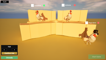 Coop Coup is a online multiplayer party game where players must blend in with a crowd of NPC chickens, whilst trying to identify which chicken they control and which are the other player-controlled chickens. Observe, blend in... and wait for your moment to PECK.